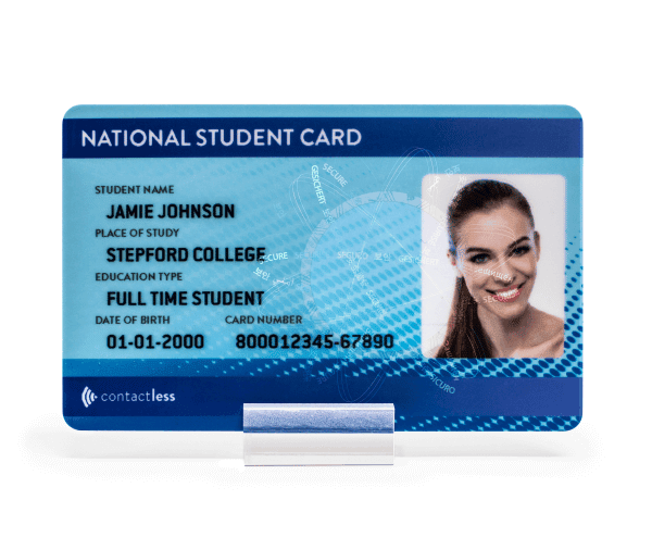 XXXX last card in our Student Card range is by no means the least – with a crisp, simple blue design incorporating microprint elements and halftones. It’s got an encoded magnetic strip which, when scanned, will report your cardholder data such as name and card number.